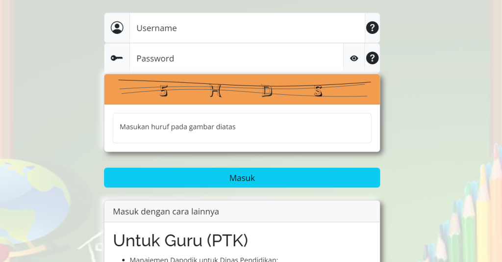 Setelah masuk halaman login, siapkan data akun. Username biasanya berupa NUPTK (Nomor Unik Pendidik dan Tenaga Kependidikan) 16 digit atau email yang terdaftar saat registrasi awal.